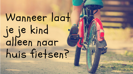 Nadat ik de telefoon had opgehangen begon het wachten… Had ik hier wel goed aan gedaan? Was ze eigenlijk niet nog veel te jong en onervaren in het verkeer? Ze weet de weg nu toch wel… Kijk ze wel goed uit bij dat ene (ongevaarlijke) kruispunt dat ze over moet…. Honderd gedachten schoten door mijn hoofd, terwijl ik op haar stond te wachten in de tuin. Mijn hart maakte een sprongetje toen ik haar 10 minuten (10 hele lange minuten) later zag komen aan fietsen. Ze glom van trots! Ze had het helemaal niet eng gevonden en zei meteen dat ze heel goed had uitgekeken bij het kruispunt. Wat een grote meid wordt het toch al! Toch bleef de vraag me bezig houden; wat is nu het beste moment op je kind alleen te laten fietsen Ik zocht het voor je uit.