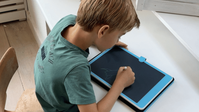 Wat ik zelf prettig vind aan de Tablo, is dat het kinderen even helemaal weghaalt van het digitale. Geen oplaadstress, geen YouTube-rabbit holes, maar gewoon tekenen, gummen, en opnieuw beginnen met één druk op de knop. De vergrendelfunctie voorkomt dat een te enthousiaste veeg hun meesterwerk wist – handig als ze trots iets willen laten zien. De magnetische stylus ligt goed in kleine handen en de stevige beschermhoes zorgt ervoor dat het apparaat ook meegaat in de auto, op vakantie of naar opa en oma. Het is een duurzaam alternatief voor eindeloze stapels papier en tegelijkertijd een uitlaatklep voor hun fantasie. Bij ons wordt de Tablo inmiddels gebruikt voor alles: van het oefenen van tafels tot het tekenen van katten met een kroon (vraag niet waarom, het is blijkbaar een ding).