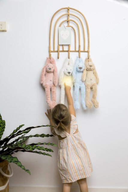 Het Rabbit Richie Nightlight combineert zachtheid met functionaliteit. Het ontwerp voelt vertrouwd, het licht is rustgevend en de geluiden helpen kinderen ontspannen. Dankzij het lichte gewicht en het ontbreken van snoeren kun je het lampje makkelijk meenemen, bijvoorbeeld naar opa en oma of op vakantie. De mogelijkheid om zowel kleur als geluid naar wens aan te passen, maakt het lampje geschikt voor baby’s, peuters en jonge kinderen.