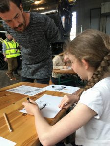 We kwamen precies op tijd voor een tekenworkshop van Arne van der Ree, de illustrator van de nieuwe Pinkeltje boeken. Hij leerde ons treinen tekenen uit de losse pols. Na afloop signeerde bij natuurlijk ook onze boeken.