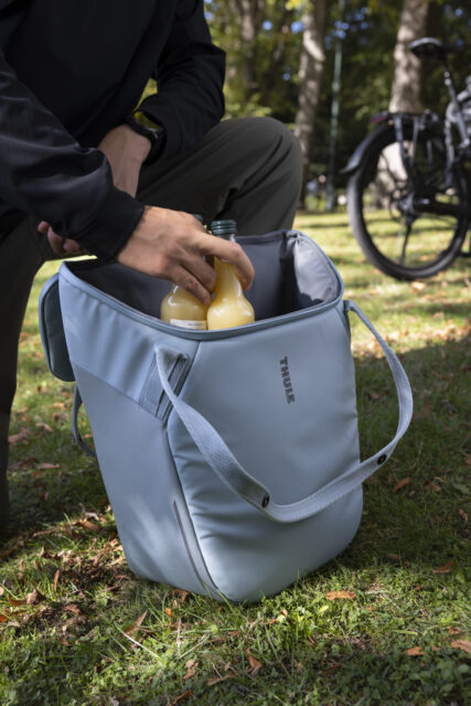 Thule zag hier een gat in de markt. Want waarom zou een tas die praktisch is op de fiets, niet ook heerlijk moeten zitten wanneer je te voet verder gaat? Met die gedachte gingen de designers aan de slag, en het resultaat mag er zijn.